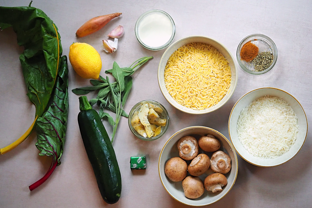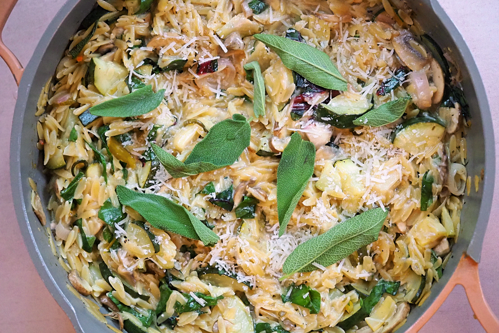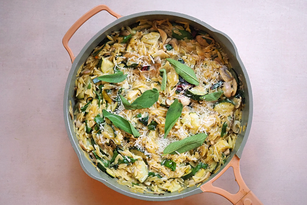 A weeknight one pot orzo with seasonal veg