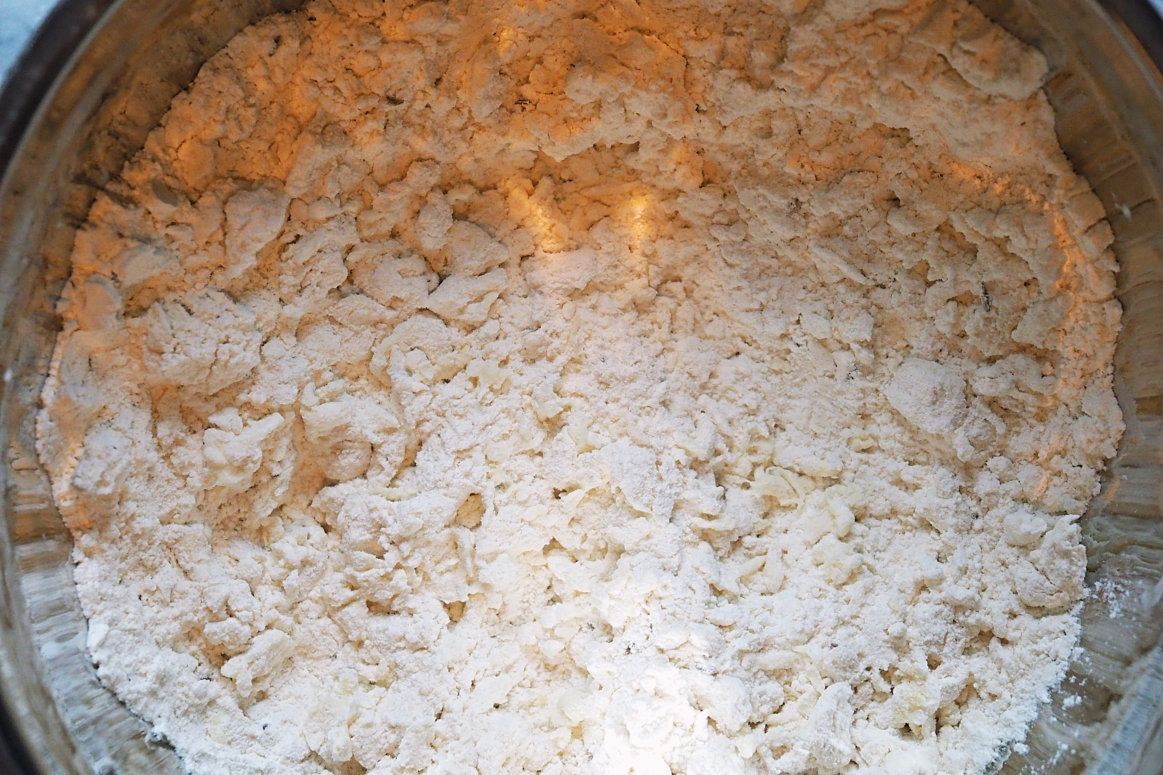 - By hand, integrate the wet ingredients with the dry to create a flaky texture