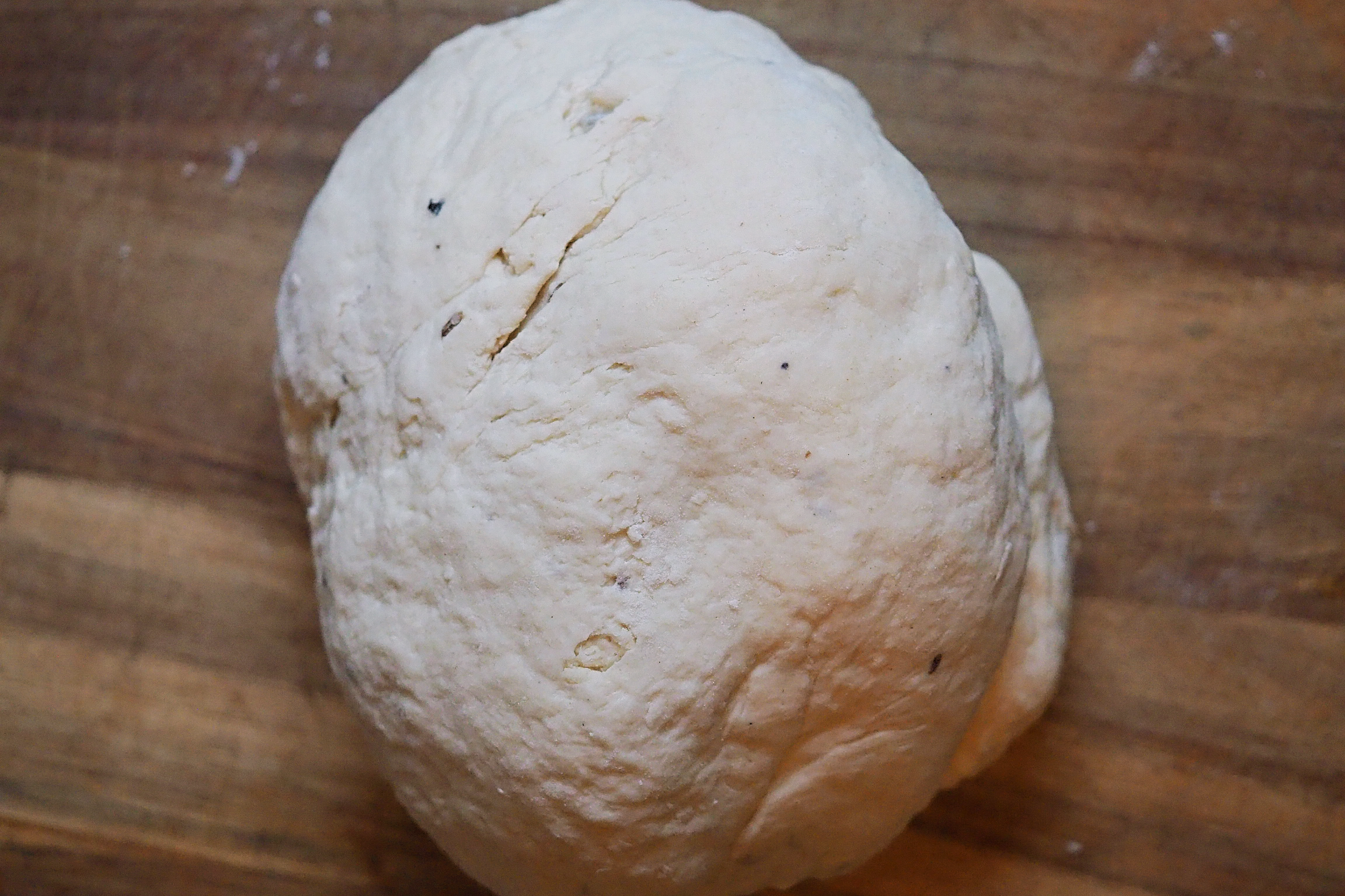 - Pour the dough onto a lightly-floured surface and knead for a few minutes by hand until you have a smooth ball