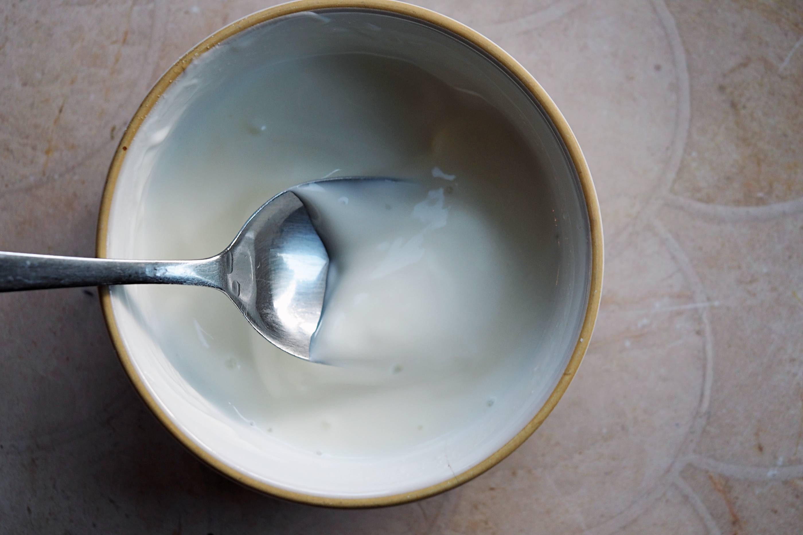 - Combine the yoghurt and lemon juice, add a dash of water if needed to create a dressing consistency