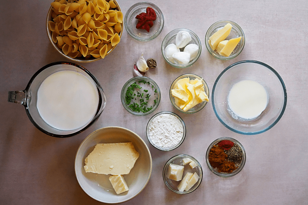 This is a really simple recipe; you’re just making the Mornay (Béchamel + cheese) with a few added extras like the spices and the tomato paste. I’ve been a little vague with the amount of milk to use purely because some people like that really runny sauce and others prefer a richer, less ‘wet’ pasta bake.
