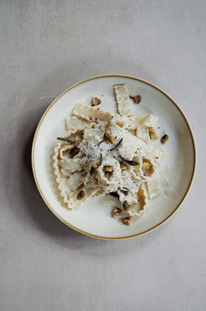 White Pesto Mafalde with Ricotta, Sage & Walnut