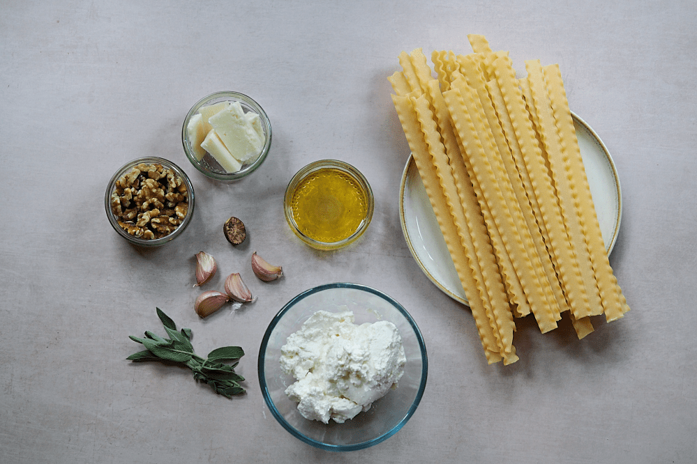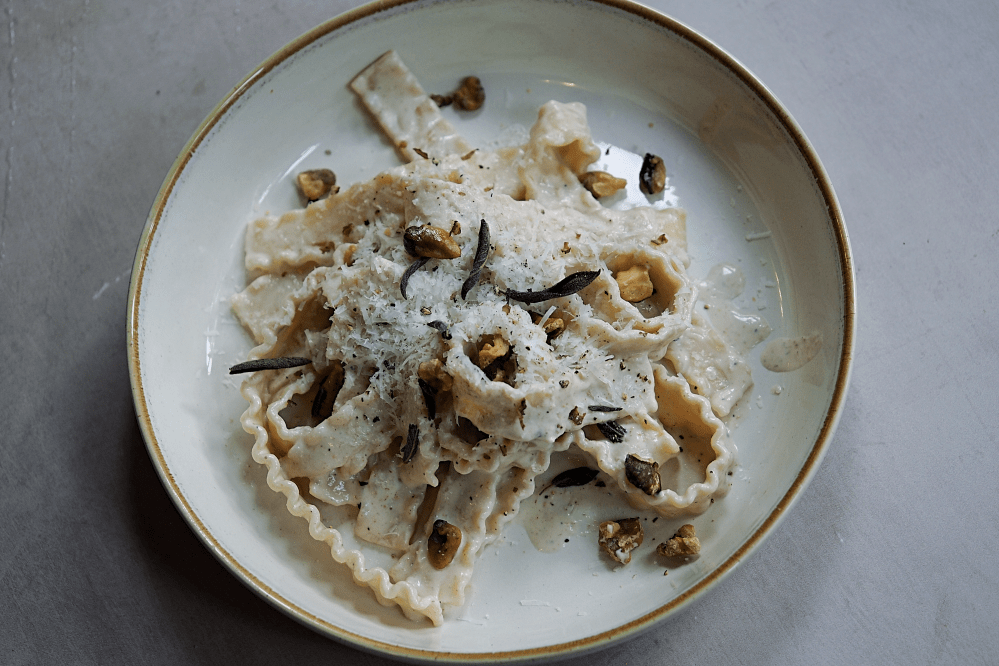 White Pesto Mafalde with Ricotta, Sage & Walnut