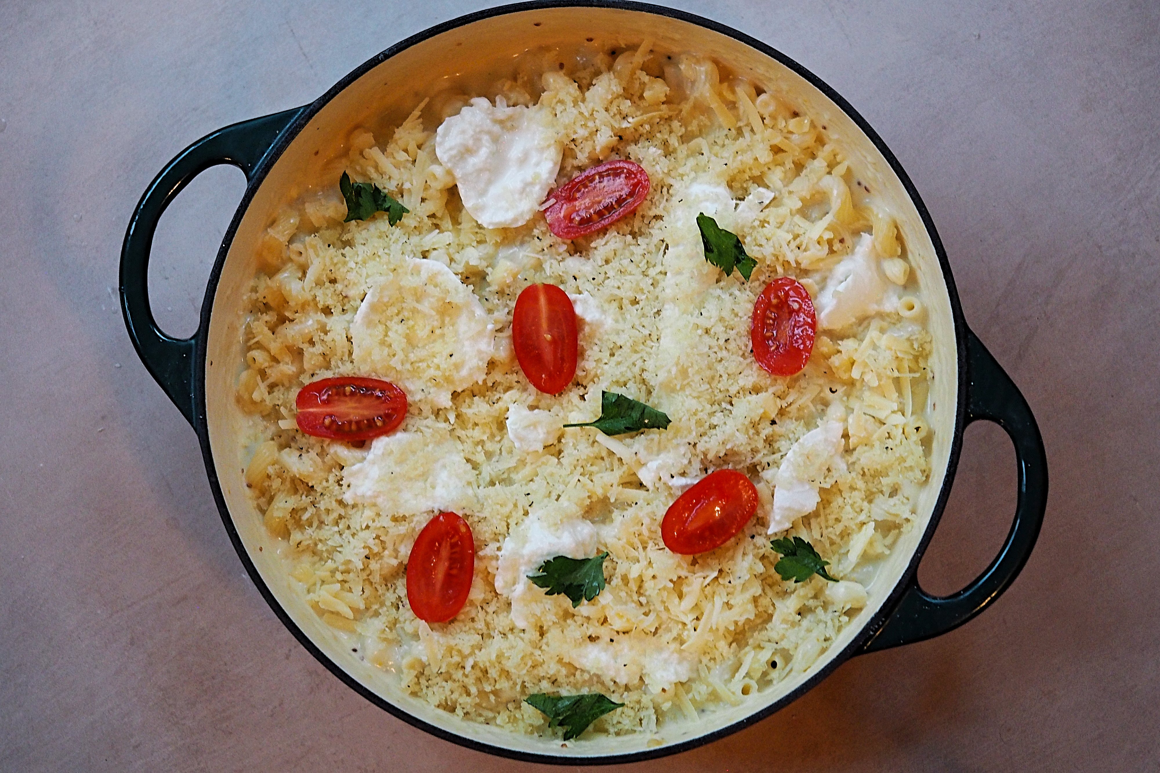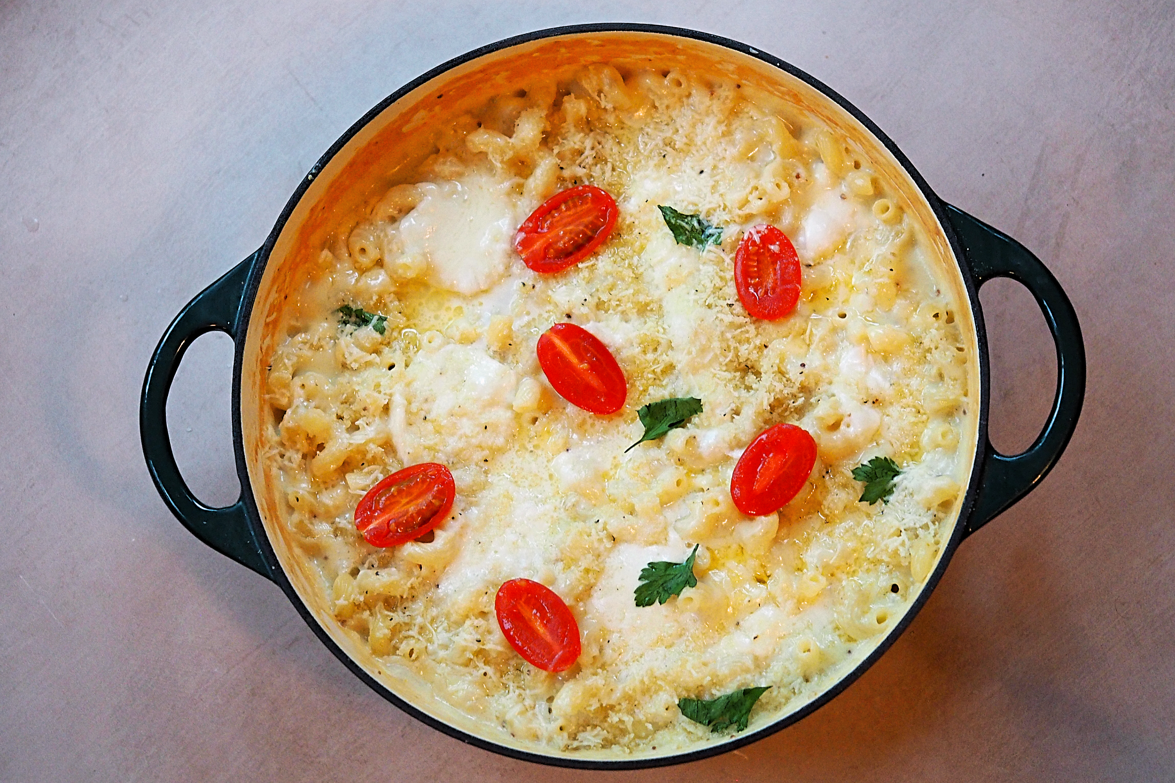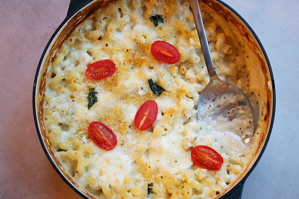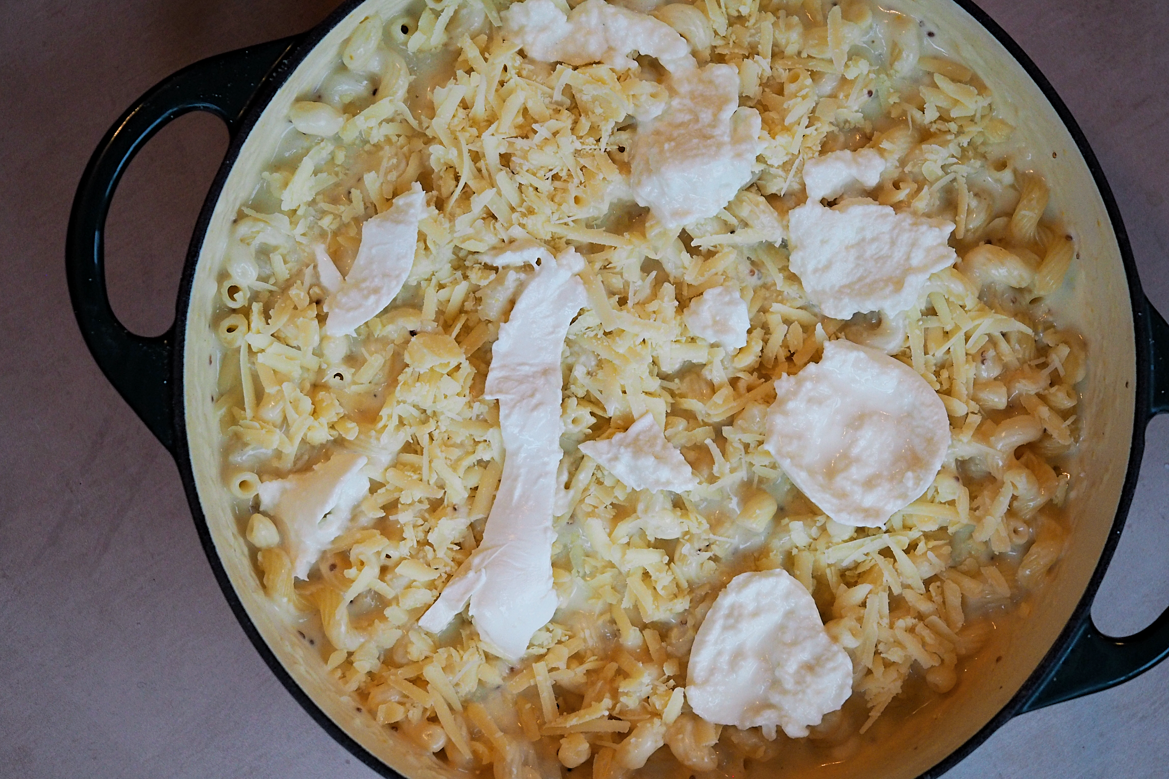 This is a really simple recipe but I’d just add that I really do recommend using a blend of cheeses to add that depth of flavour, ensuring that you’re using plenty of your melting cheese to ensure everything fully-incorporated into the sauce. I recommend reserving a little pasta water in a bowl after you’ve cooked it because if you’re struggling with a chunky sauce that isn’t smooth, the starch in the pasta water can help emulsify everything together.