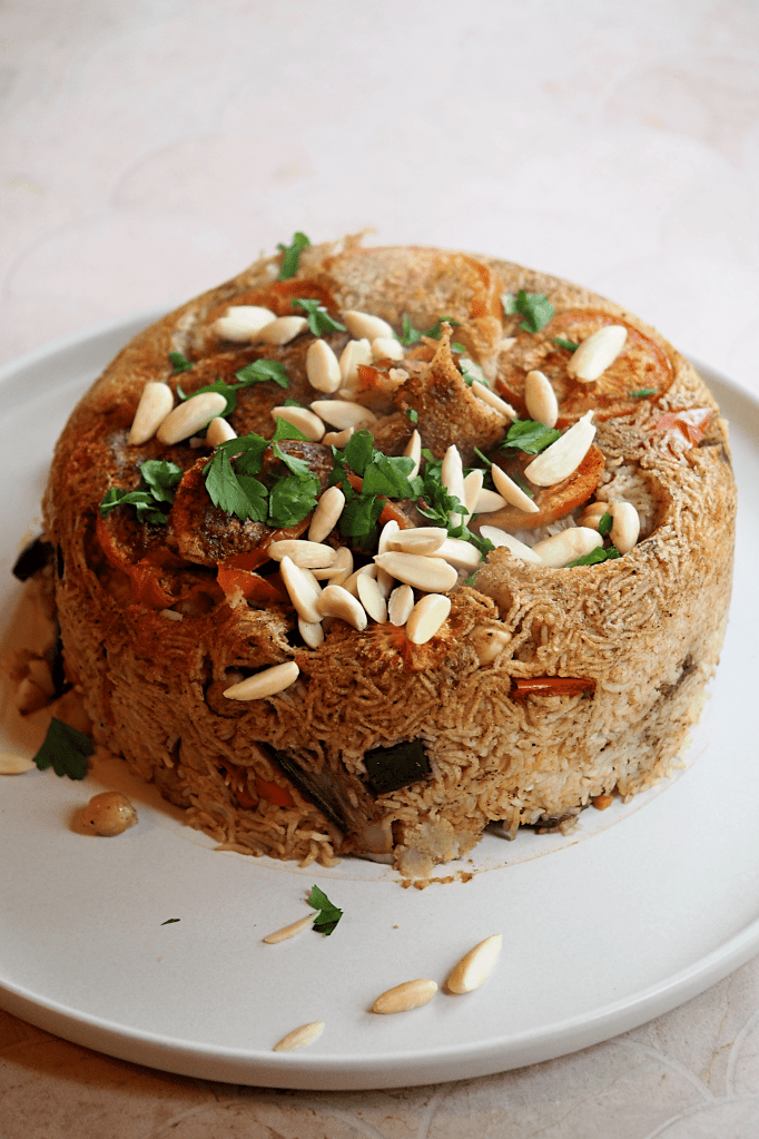 - Remove the saucepan and you should have a maqluba – your tomatoes might be burnt or edible, you may have crisped edges or a perfect cook; there’s a lot of variation, but you’re now ready to serve this dish as a main or side with some fresh herbs or nuts sprinkled over the top
