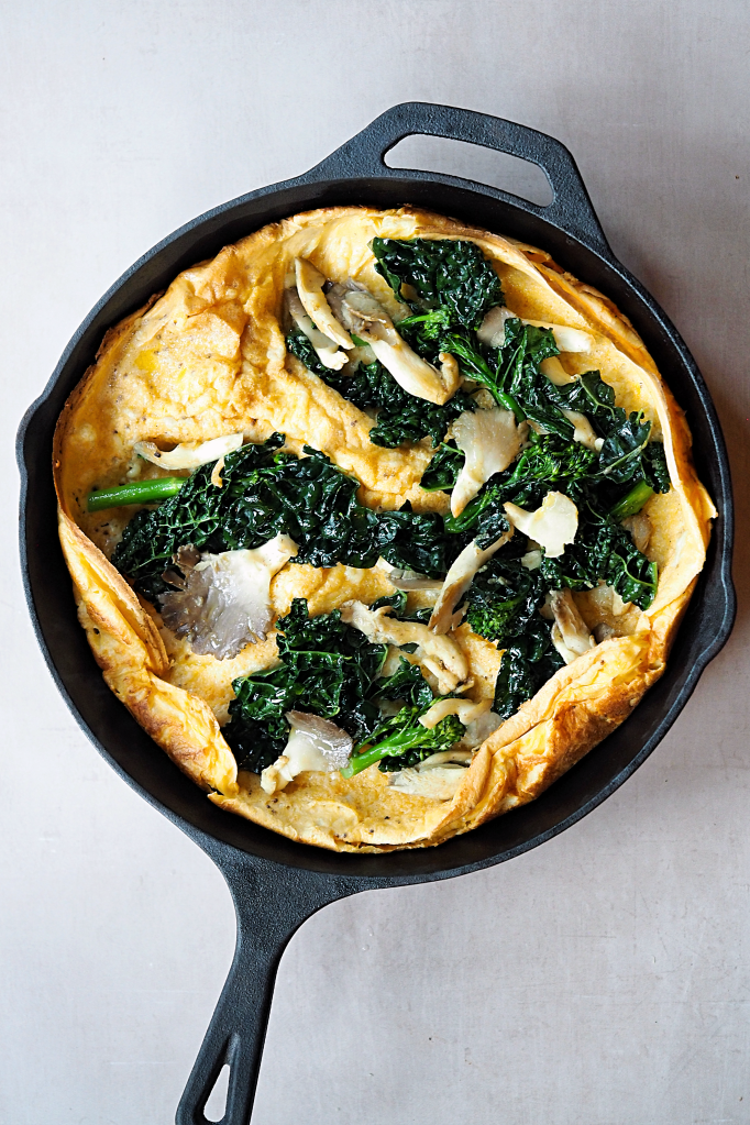 Savoury Dutch Baby with Mushrooms, Kale & Broccoli