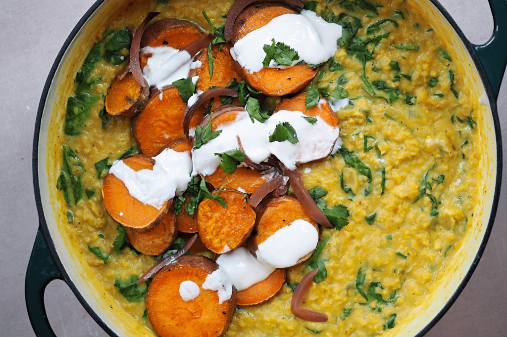 Today I’m sharing a rich, creamy lentil dal that’s easy, pretty ‘hands-off’, almost a ‘one pot’, it’s packed full of flavour and is also plant-based…