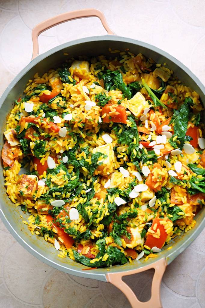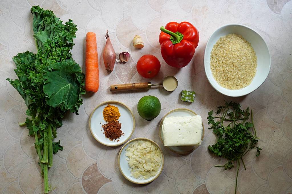 Do you ever start with a recipe and it goes through so many iterations that it barely resembles the original dish? That was my path with this rice dish which I originally made 2 years ago! I guess that’s the cool thing about cooking; you can be inspired by a dish and end up creating something new… so, let’s do my optimised halloumi spiced red rice.