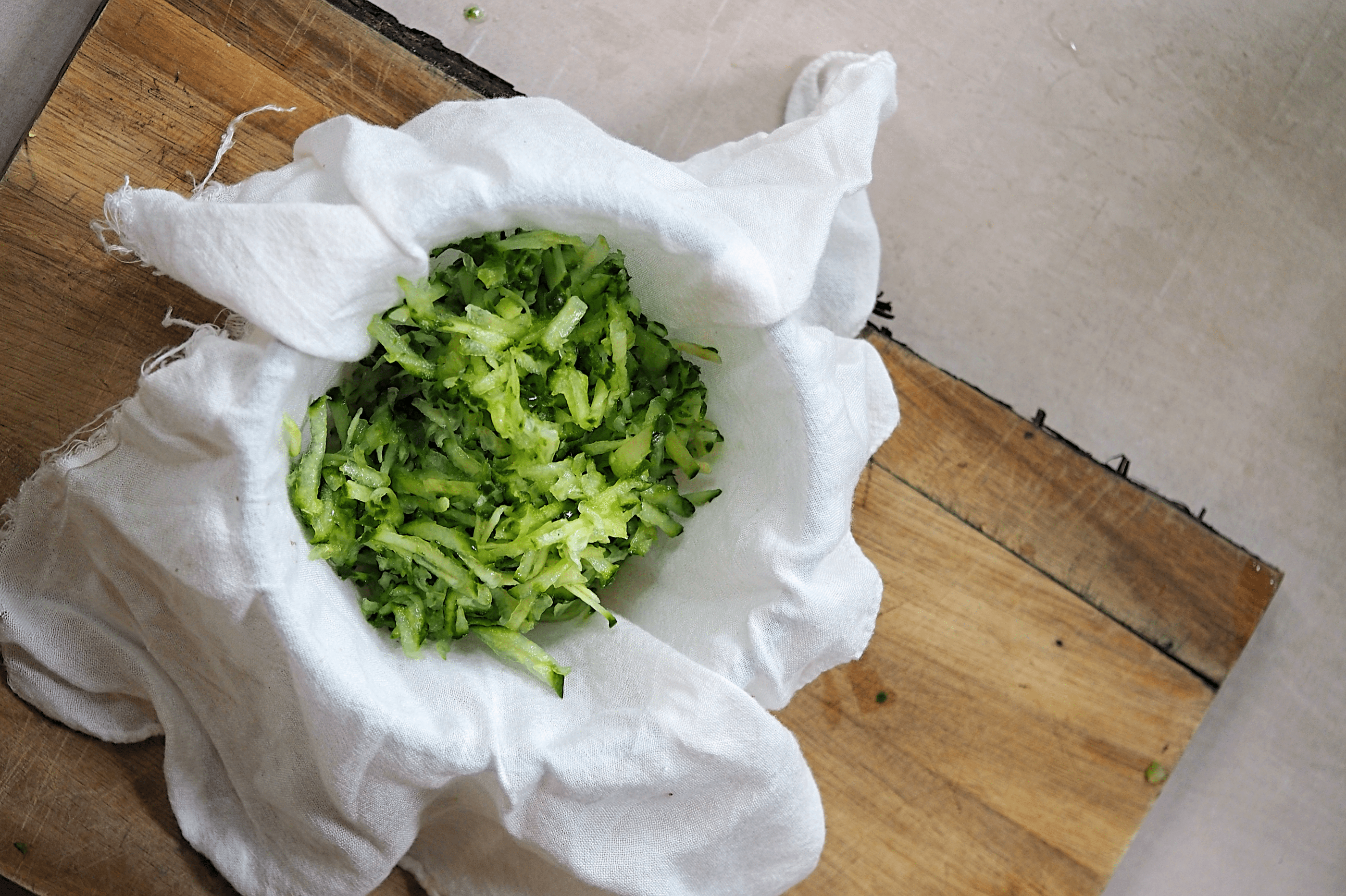 - Use cheesecloth or your hands to squeeze as much water out of the cucumber as possible