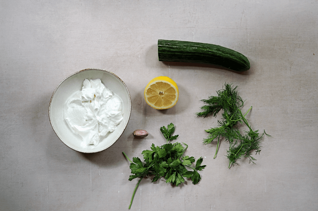 Tzatziki is a classic Greek dip with cucumber, tangy yoghurt and fresh herbs and I love having it in my fridge as a flavour-booster that always seems to work. As a snack, you can enjoy this with raw carrot and cucumber sticks, but it also works to add fresh flavour to your wraps and light summer salad bowls.