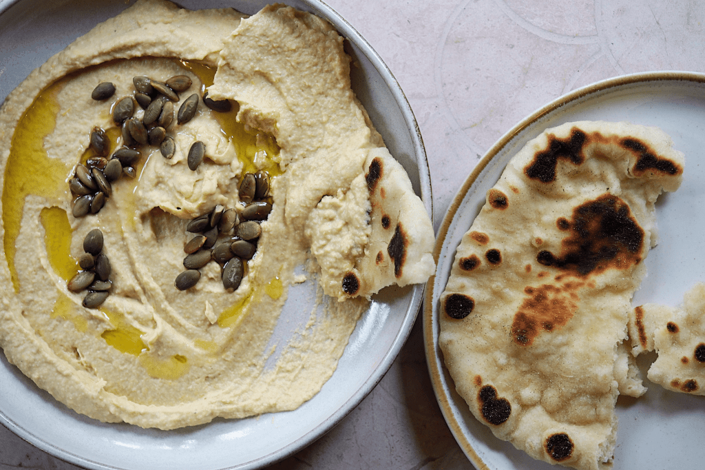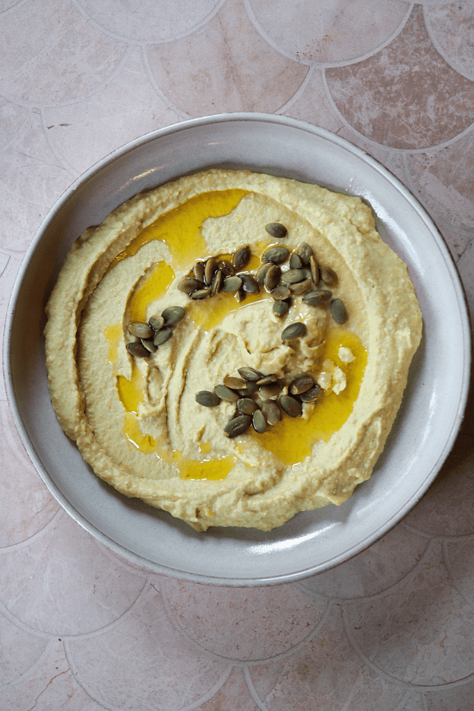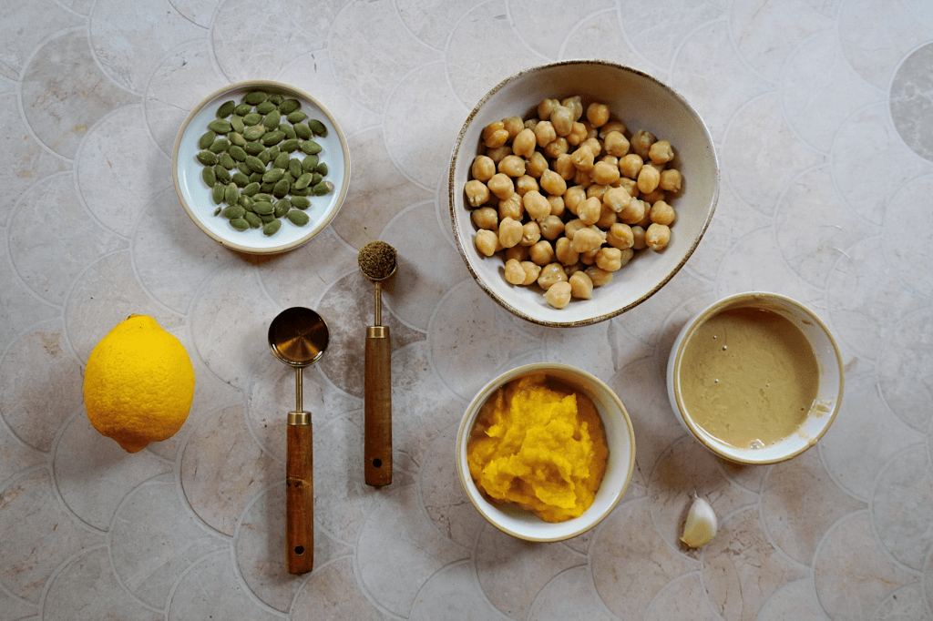 It’s pumpkin season so I’ve been doing pumpkin twists on a lot of my usual favourites and right now, and today’s recipe is the perfect seasonal twist on my go-to hummus recipe. It’s not gimmicky or overpowering, the pumpkin just adds this subtle background sweetness that’s beautiful with the earthiness of the cumin and tahini…