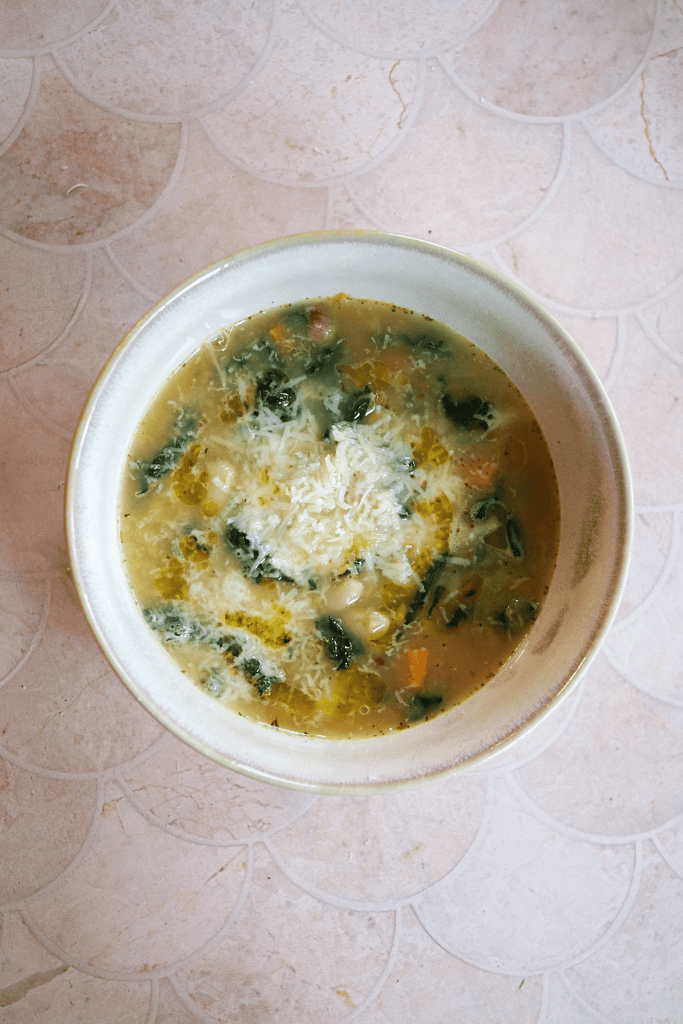 Grated Parmigiano Reggiano and the rind (optional or can be substituted with a rennet free Italian hard cheese or Nutritional Yeast)