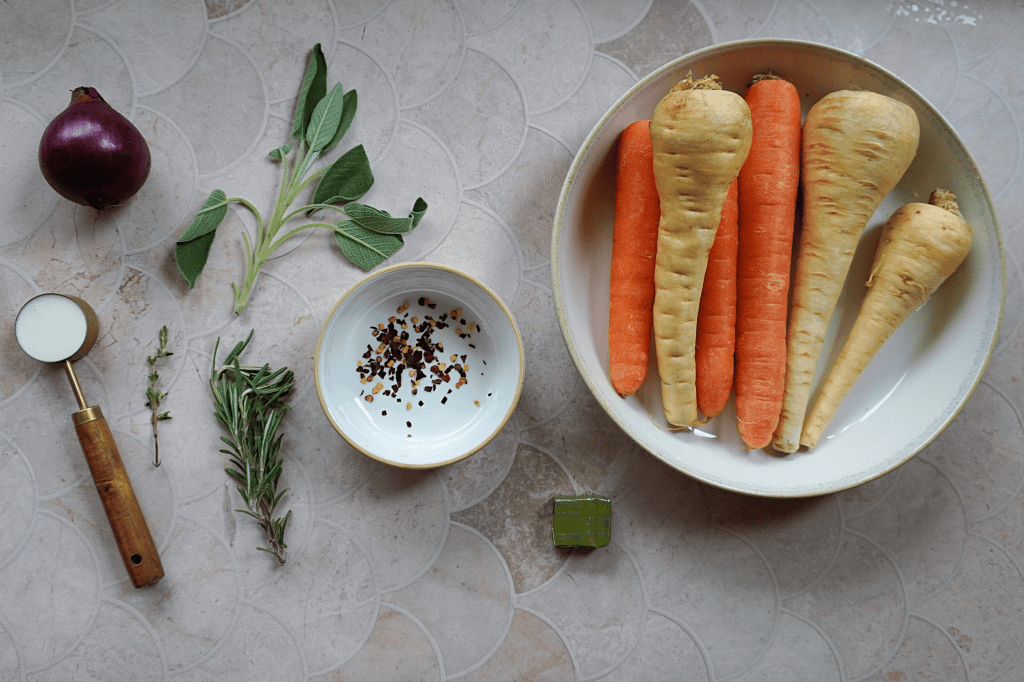 If you’re getting sick of the festive leftovers; try turning all the extra carrots, parsnips and herbs you want to use up into this cosy and delicious soup…