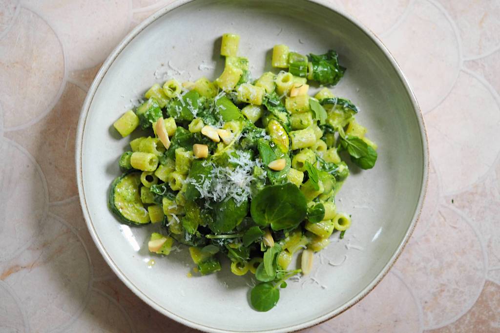 An easy, fresh and delicious pasta dish with plenty of greens