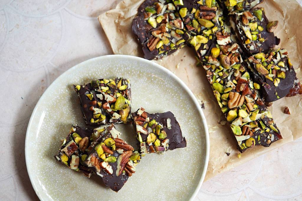 I don’t tend to go for fussy desserts; banana bread is about as far as my cake-baking skills go! I love a simple dark chocolate bar but sometimes it’s nice to elevate it. This quick, easy and healthy recipe (each square contains 2g of fibre) has been in my rotation every week lately…