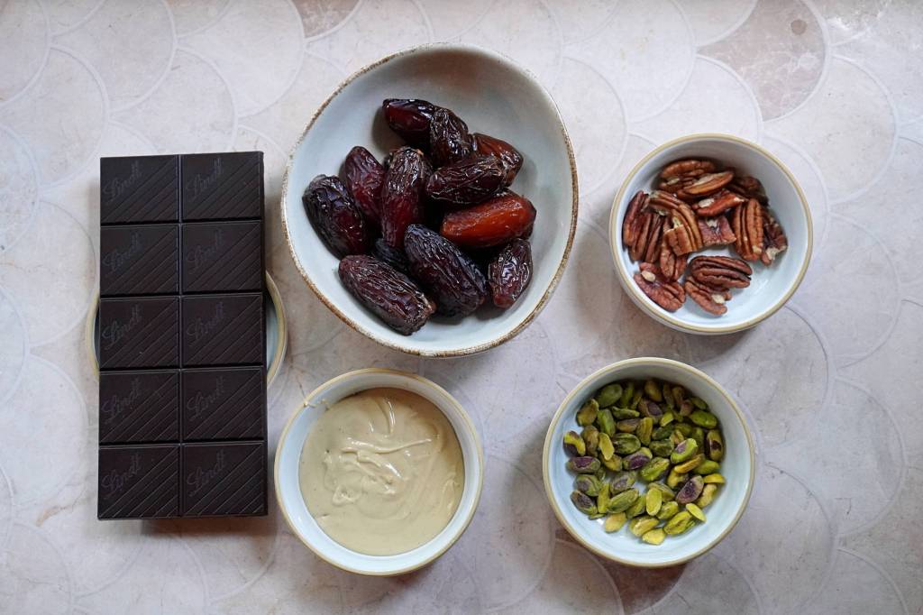 - 10-12 Medjool dates (depending on size) (half-cut and stones removed)