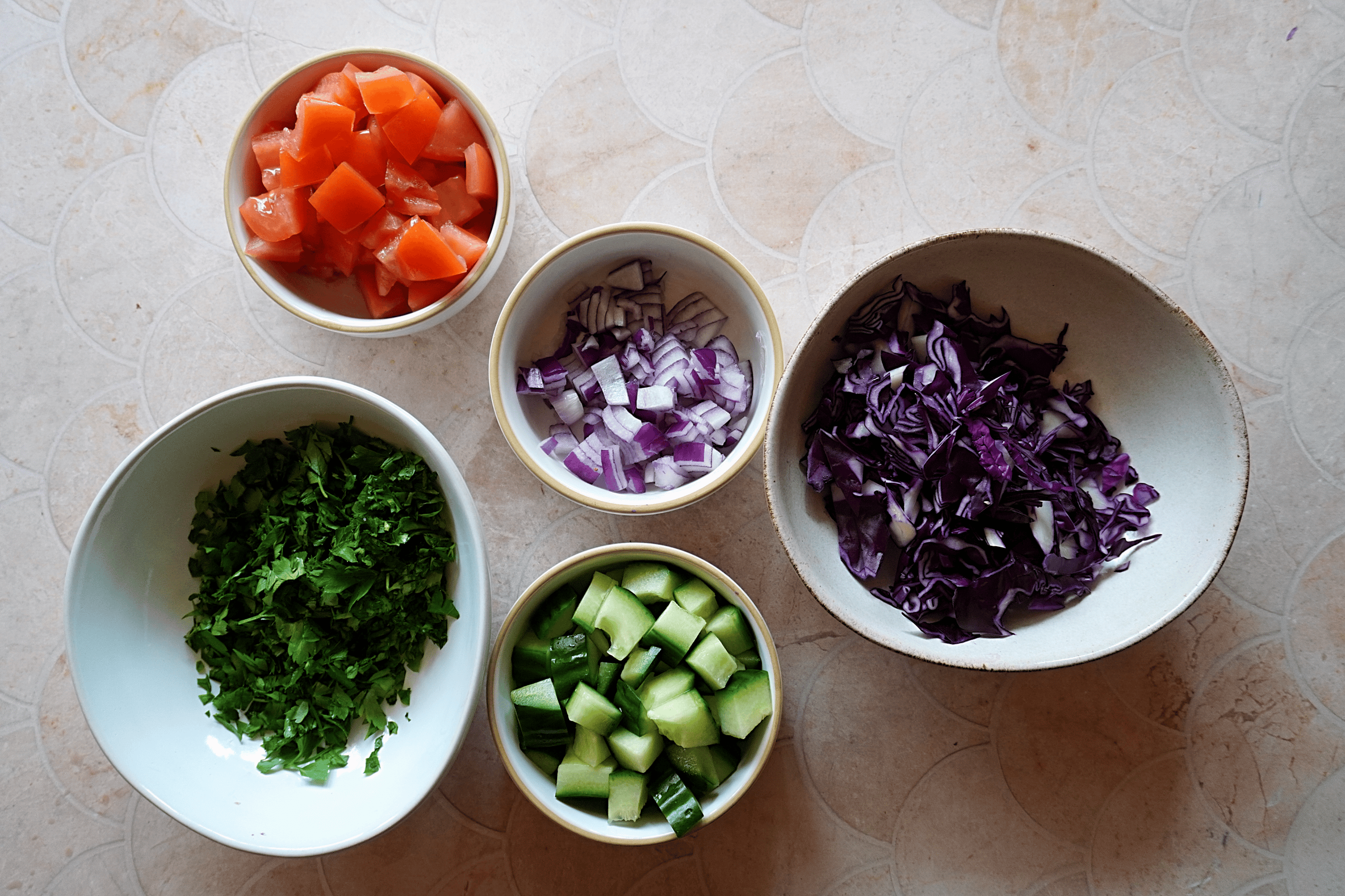 There’s not much to this one, if I’m being honest, just make sure you slice the cabbage nice and finely because we’re using it raw, so it isn’t difficult to eat.