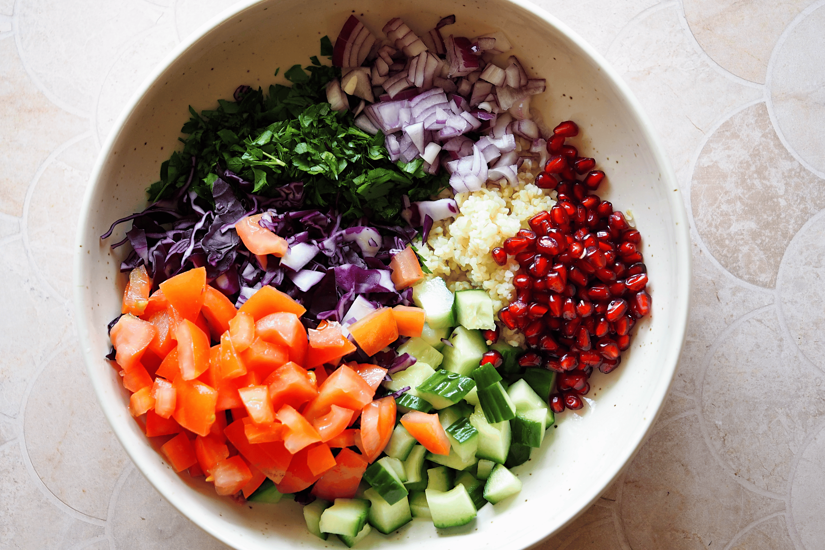 I love tabbouleh as a quick and easy salad side for meals that just need a bit of freshness. You can check out my original recipe here but today I’m sharing a bit of a twist on the classic, featuring some more autumnal colours and flavours…