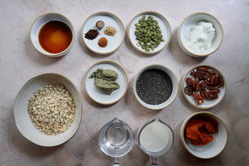 A healthy breakfast prep with pumpkin spice flavours