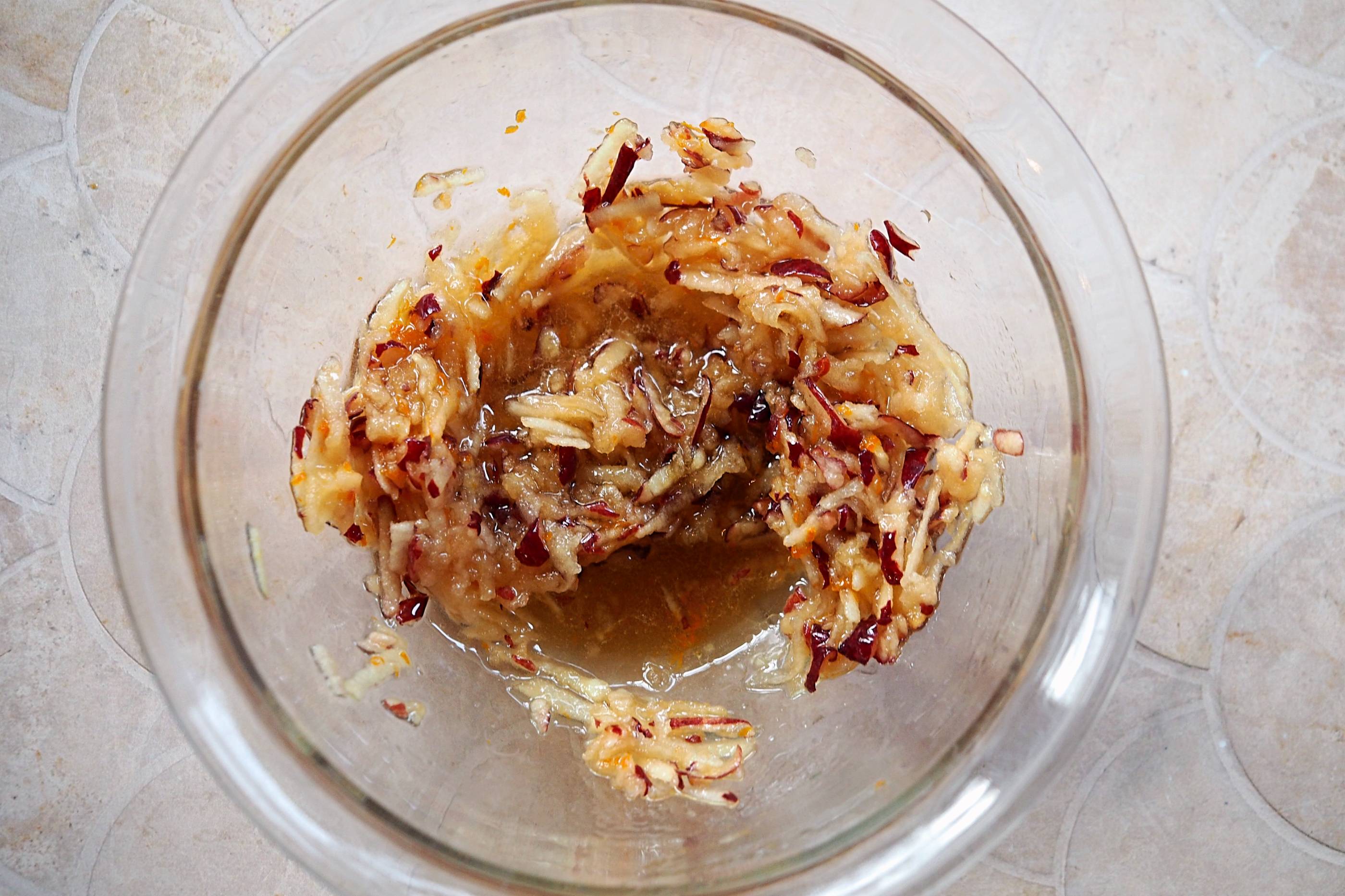 - Mix in the apple and orange zest