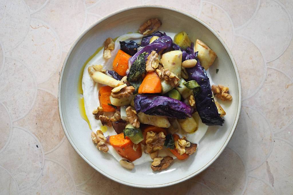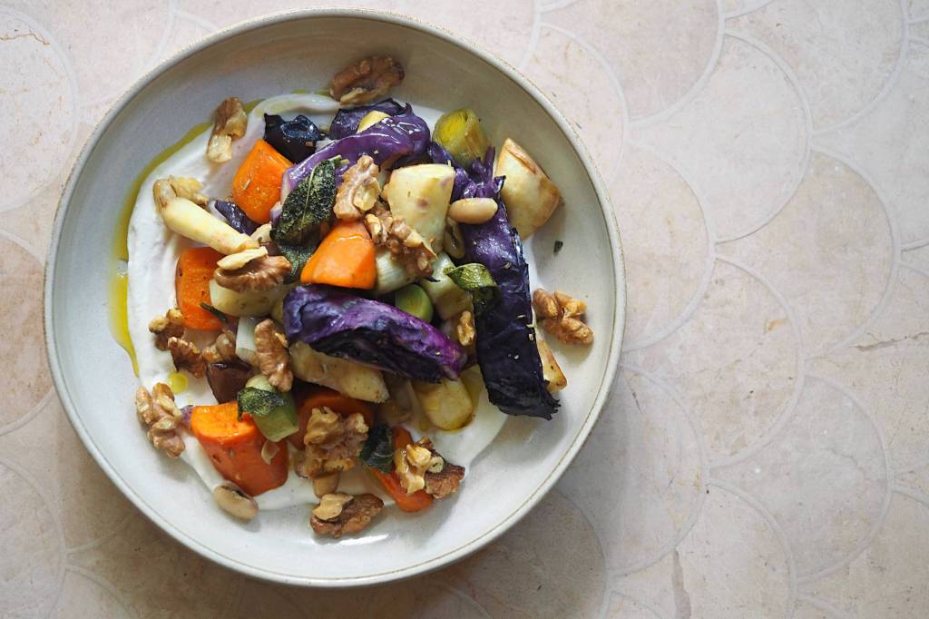 - Serve the vegetables over a bed of whipped ricotta with the walnut and sage sprinkled over (optional: finish with a drizzle of extra-virgin olive oil)