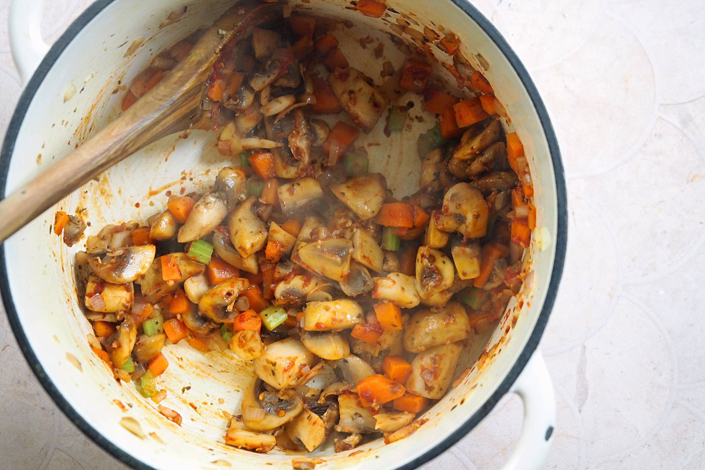 - Add the carrot and celery and sauté for a further couple of mins